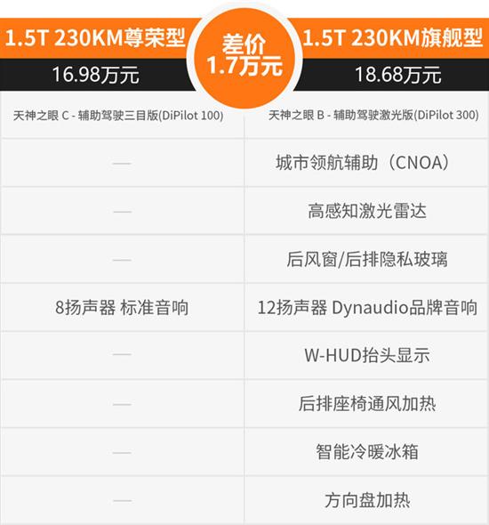 ■ 1.5T 230KM旗舰型 推荐指数:★★★