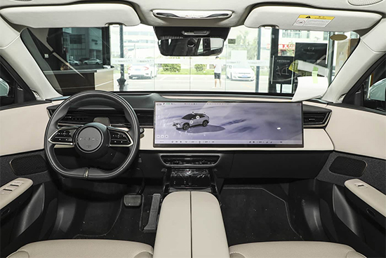 内饰采用简洁风格,26.45英寸5K悬浮一体式屏幕成为了视觉重心。配置方面提供了双辐式平底方向盘、怀挡式换挡机构、手机无线充电功能以及L2级驾驶辅助系统,支持自动泊车。