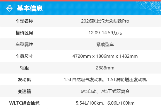 上汽大众朗逸Pro共推出7款配置车型,厂商指导价12.09-14.59万元,官方限时价8.88-11.29万元,现在购车可享4000元置换补贴、2年0息金融政策、整车终身质保和全系数字钥匙限时免费赠送等购车权益(详情请咨询当地经销商)。