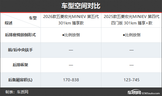 后备厢容积方面,新款车型相比老款车型有明显提升,标准状态下容积从老款的123L提升至170L,拓展容积更是达到838L,相较于老款的745L,增幅十分显著。同时,新老款车型的后排座椅均支持比例放倒,可进一步扩展储物空间,整体实用性表现可圈可点。