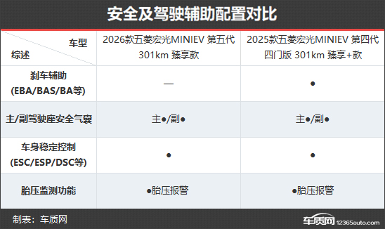 2026款五菱宏光MINIEV共推出4款配置车型,尽管车型起步价格保持不变,但顶配车型的售价却略有下调。本次选择对比的车型均为售价最高的顶配版本,以便更直观地呈现两者在配置层面的具体差异。