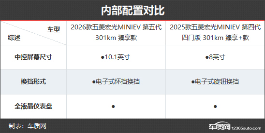 虽然在很多车迷眼中,五菱宏光MINIEV只是一辆普通的代步车,但客观销量数据显示,这款纯电小车获得了不少人的青睐。究其原因,在于其亲民的售价、低廉的用车成本,以及短小车身带来的出众灵活性。作为一款城市短途代步车,五菱宏光MINIEV确实精准契合了目标用户的需求。近期,2026款五菱宏光MINIEV第五代正式上市,新车的外观与内饰均进行了全面升级优化。那么,新款车型相比老款车型都有哪些具体变化?让我们通过本次新老款车型对比,一探究竟。