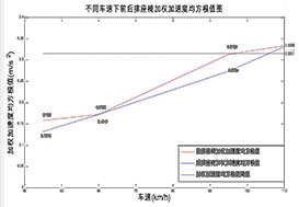 度均方根值- 通常情况下,0.315 m/s2是一个衡量标准,而实测中发现2013款讴歌ILX 2.0L在低速阶段前排大于后排加速度,是因为该车采用了传统的发动机前置前驱形式。低速阶段,发动机和车内零部件虽产生共振,但人体对该共振察觉不到。随着速度的增加,当车速达到80km/h的时候,前后排座椅的加速度值几乎在一个数值上面,而随着车速继续加快数值持续上升,且两间的差距越来越大。从测试结果来看,当时速达到 110 km/h时,前后排座椅的加速度值均超过了0.315m/s2 ,但后排明显要比前排座椅振动更小,这意味着后排座椅的驾乘感觉会相对舒适。