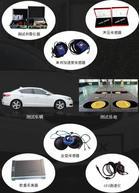 本次测试,北京理工大学依旧采用了5种类型的传感器,包括坐垫传感器(2种)、声压传感器(1种两套)、加速度传感器以及GPS测速仪。数据通道共有16个通道,其中除了车速信号单独采集外,其余15通道信号均由北京东方振动和噪声技术研究所提供的设备采集。所得数据的准确性与专业性都符合国家级标准。