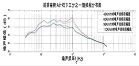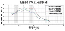 如图所示,该车噪音主要分布在中心频率100~1000 Hz的区间,由此可见厂家对该车噪音控制还是比较到位的。我们可以看到,在500 Hz左右时该车出现的噪音是由发动机半阶次噪声引起。