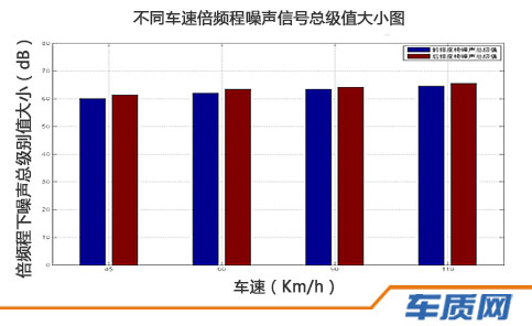 通常情况下,人耳对于2000~4000Hz的声音最为敏感,通过分析以上图表我们可以清楚的看到,该车的噪声信号主要分布在10~500Hz区间;不同车速下人耳感受到的声压均维持在50dB左右,大致相当于办公室环境。不同车速下,噪声信号在30Hz、80Hz、110Hz处出现峰值,主要由发动机和传动系统的振动引起。