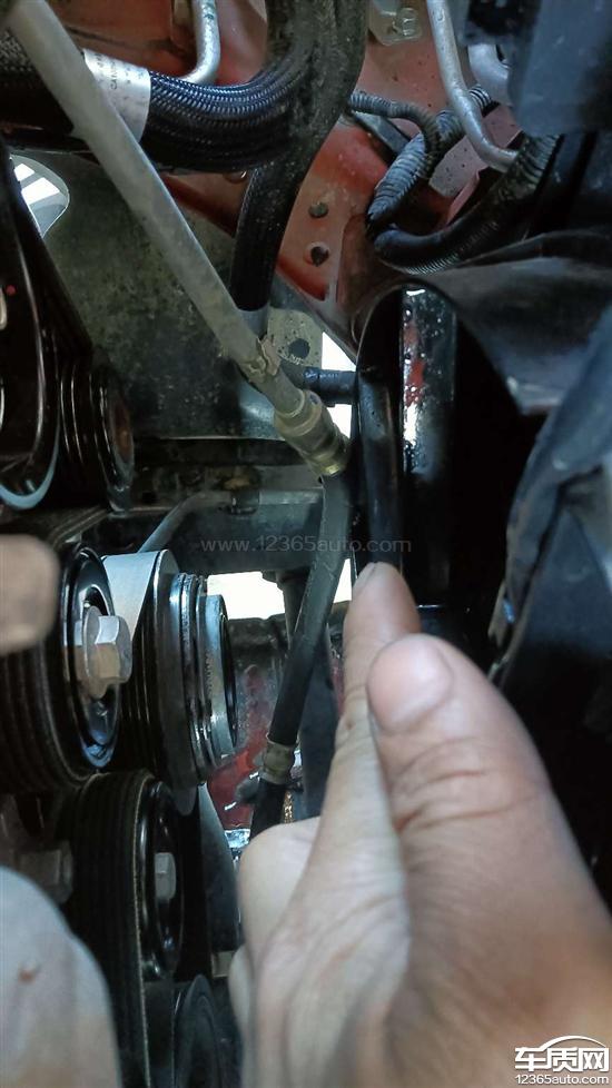 转向助力油管破裂,导致转向助力失效,因为设计或者装配问题,而产生的油管与皮带、皮带轮摩擦导致磨损破裂,进而在行驶途中转向助力失效,车辆差点失控。