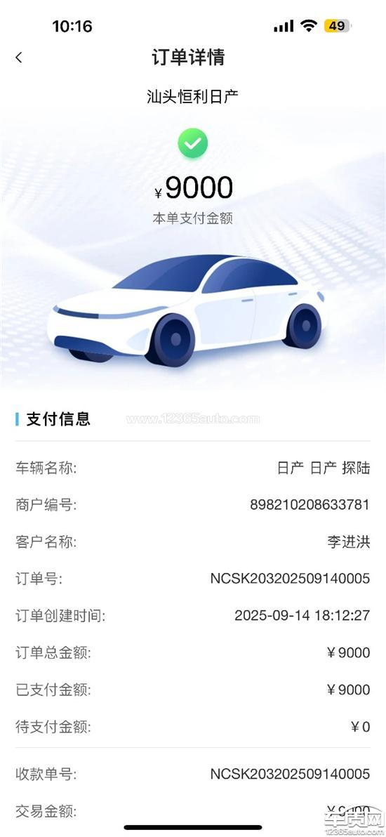 东风日产探陆购车缴纳定金经销商未退还