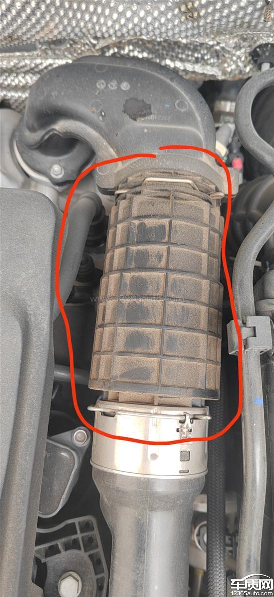 涡轮增压器进气管严重渗油,两次索赔均为解决问题。第一次发现图片中部件渗油后去4S店检查后,甘肃4S店更换了该进气管。第二次发现图片中部件渗油后,甘肃4S店检查后更换了凸轮轴罩盖及涡轮增压器进气管。半年后,涡轮增压器进气管道又出现渗油。现要求厂家彻底检查该故障原因,并解决该问题。中午十二点前联系。